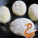 Wet hands roll the ball, roll in flour,