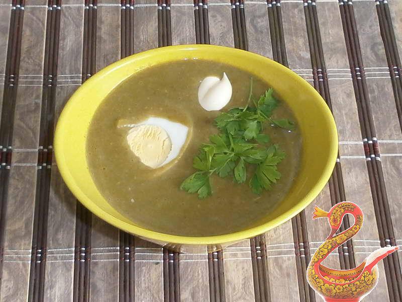 So no tricks and complexities in this recipe simply does not. After just 20 minutes, we have prepared a very original sorrel soup. The only thing that it just cries, it’s a big spoonful of thick cream. Its actually I should. And you urge.