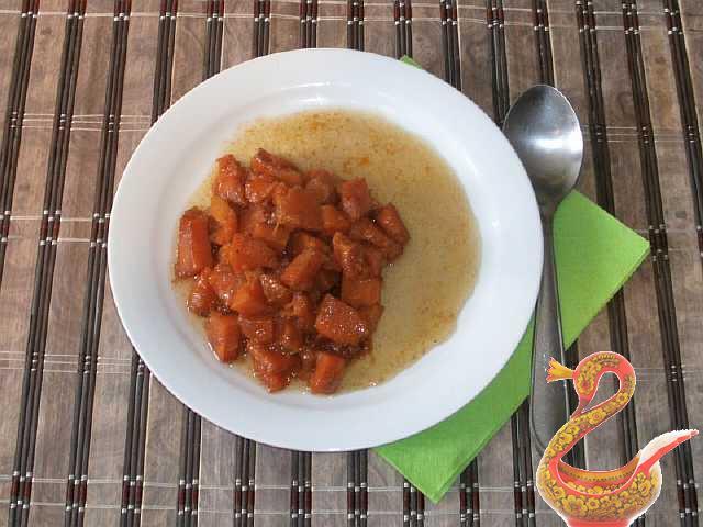 That’s all the wisdom of baked pumpkin with honey is ready. We spread it and eat while it’s hot.